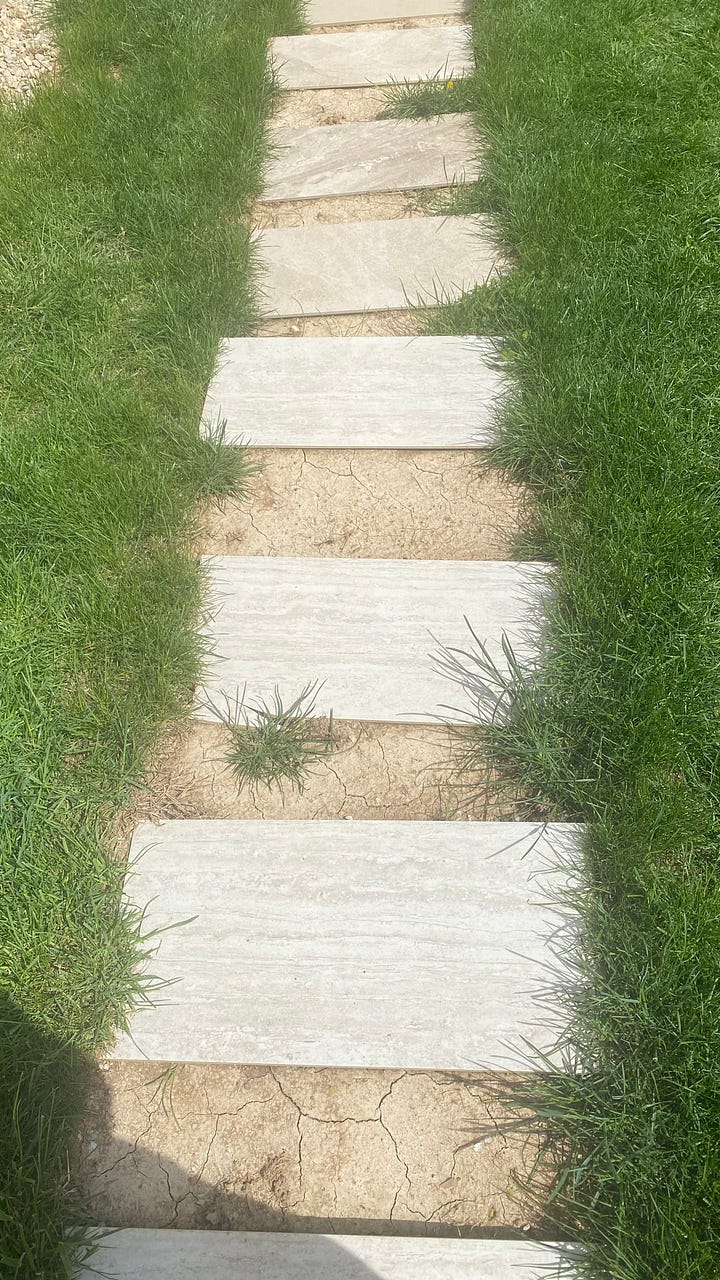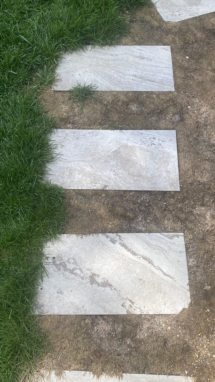 The 12-by-24-inch tiles were not deep enough to walk normally. The distance was wrong and threw off gait and balance. The tiles cracked from weather and pressure and were slick when wet. The path wasn’t wide enough to be ADA sensitive, while the rest of the house is. Oh, and we didn’t have enough tiles to finish so it just stopped 15 feet from the back deck.